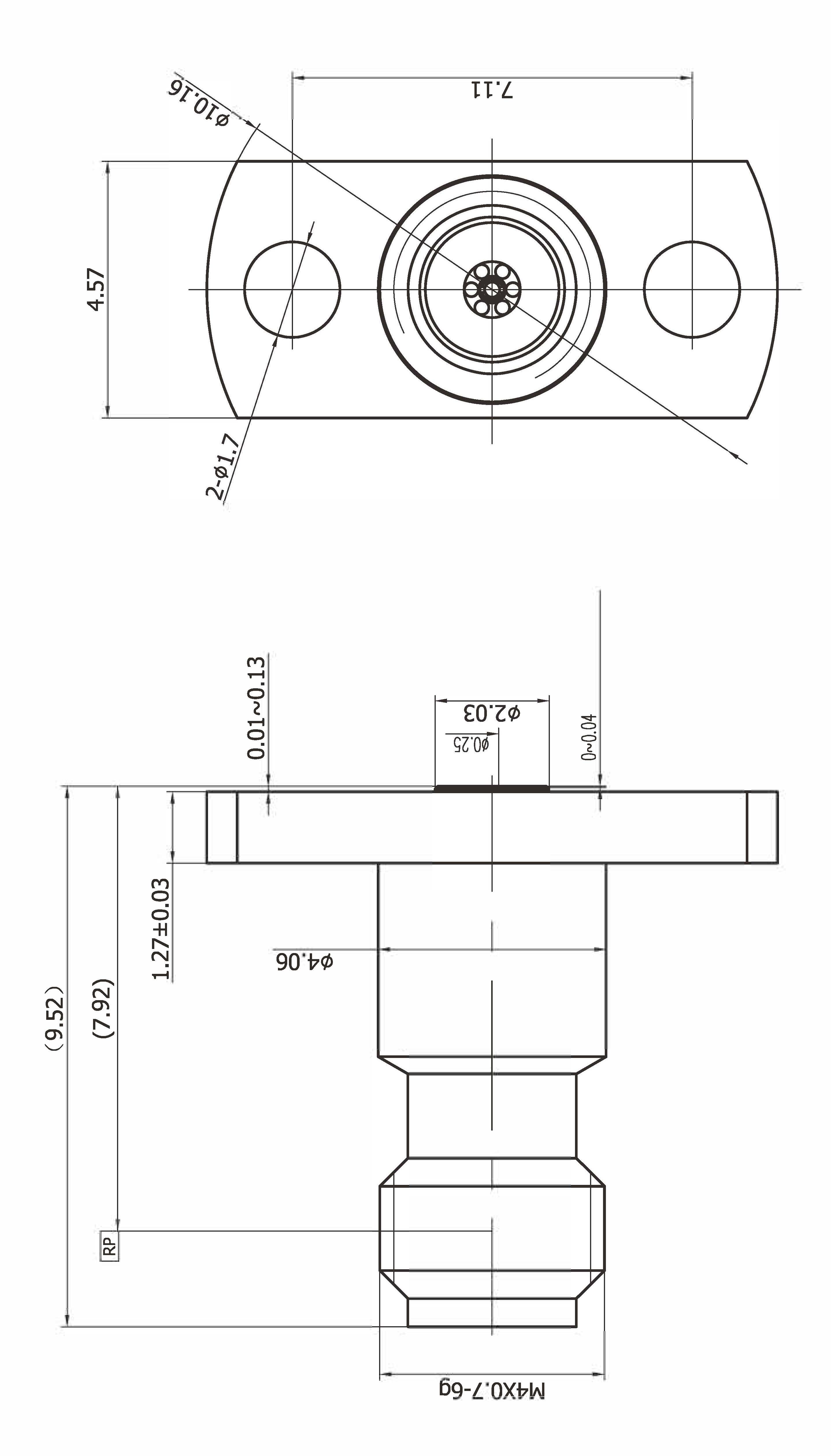 1.0母頭 板裝式兩孔法蘭 板厚1.27 孔距7.11 適配0.25的插針